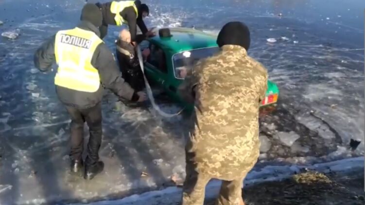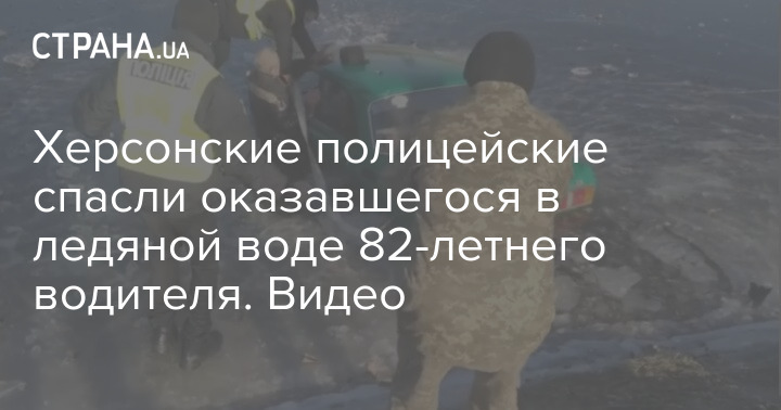 В Херсоне сотрудники правоохранительных органов вытащили пожилого мужчину из автомобиля, который съехал в замерзший магистральный канал.