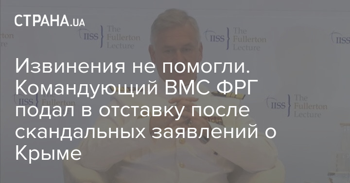Командующий Военно-морскими силами Германии вице-адмирал Кай-Ахим Шенбах после скандального заявления о том, что Крым больше никогда не присоединится к Украине, подал в отставку.
