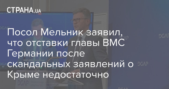 Посол Украины в Германии Андрей Мельник считает, что отставки главы ВМС Германии Кая-Ахима Шенбаха, заявившего, что Крым Украине никогда не вернуть и что Путину нужно высказать уважение, недостаточно для "восстановления полного доверия к немецкой политике".