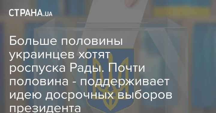 Больше половины украинцев поддерживает проведение досрочных парламентских выборов. Почти половина украинцев считает, что нужно провести досрочные президентские выборы.
