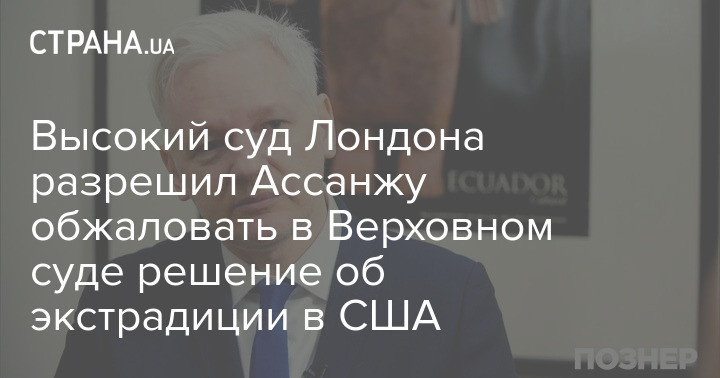 Высокий суд Лондона разрешил Ассанжу обжаловать в Верховном суде решение об экстрадиции в США