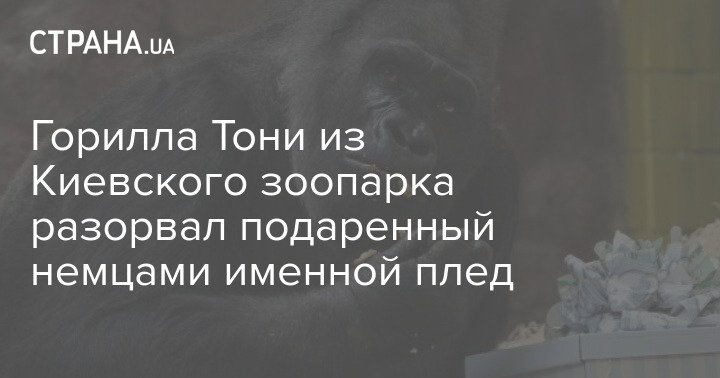 В Киевском зоопарке самец гориллы Тони разорвал новенький плед с вышитым именем самца, который ему прислали на праздники из Германии.