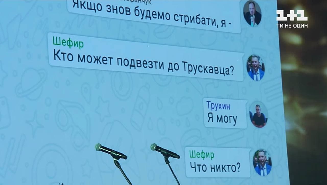 Шефир в партийном чате поинтересовался, кто сможет его подвезти до Трускавца для участия в выездном заседании фракции, и на вопрос отреагировал сам Александр Трухин. Однако помощник президента сделал вид, будто не видел сообщения от фигуранта ДТП под Киевом. "Кто может подвезти до Трускавца?" - Шефир. "Я могу", - Трухин. "Что никто?" - Шефир.