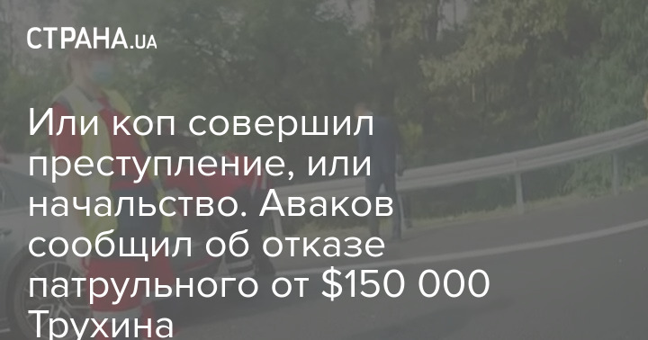 Или коп совершил преступление, или начальство. Аваков сообщил об отказе патрульного от $150 000 Трухина