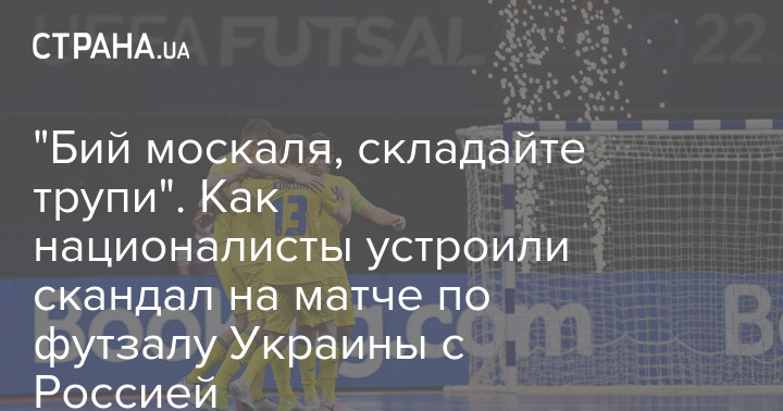Далее в трансляции неслись спортивные возгласы "фанатов": "…Смерть врагам… уйло… убей… трупы…". С трибун футзала в Амстердаме на нас смотрело перекошенное от злобы лицо, почему-то обернувшееся украинским флагом.