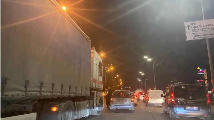 На левобережье Киева затруднено движение из-за двух ДТП с фурами. Фото: "Страна"