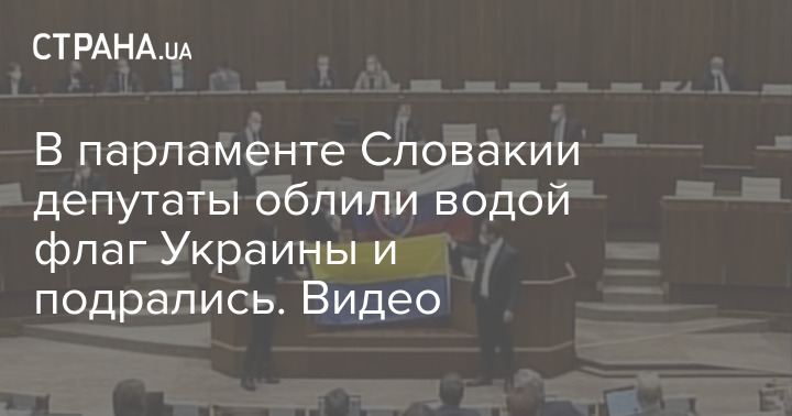 В парламенте Словакии облили водой украинский флаг. Скриншот видео