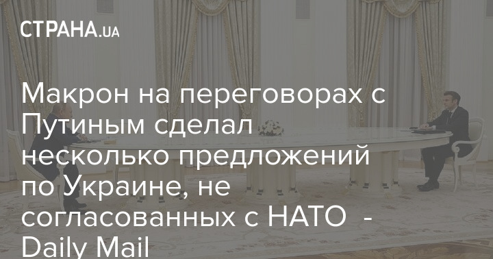 Президент Франции Эммануэль Макрон в ходе переговоров с российским президентом Владимиром Путиным сделал ему несколько предложений, которые касались Украины и не были согласованы с другими государствами-членами НАТО.