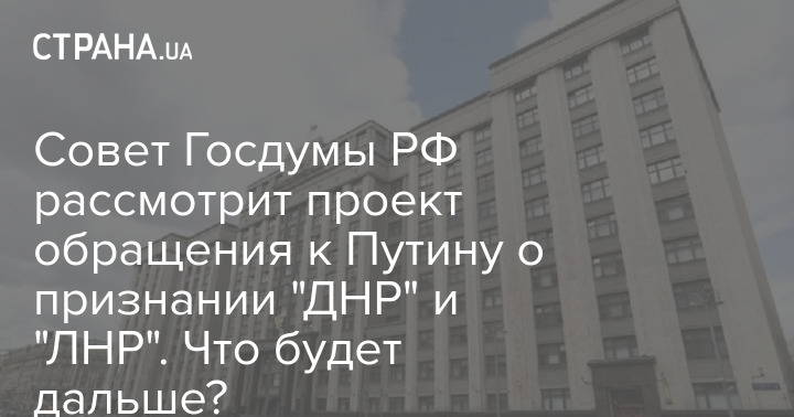 Совет Госдумы РФ рассмотрит проект обращения к президенту РФ Владимиру Путину о признании "ЛДНР", который внесла фракция КПРФ, в начале следующей недели.
