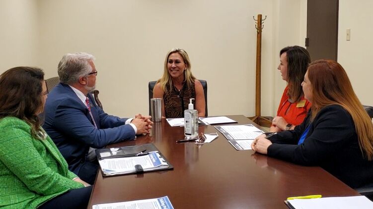Конгрессвумен (в центре) решила отшутиться после ляпа. Фото: facebook.com/RepMTGreene