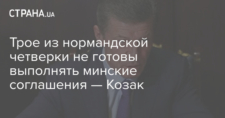 Вчерашняя встреча политсоветников показала, что трое из четырех участников "нормандского формата" не готовы выполнять минские договоренности. Такое заявление сделал заместитель руководителя администрации президента Российской Федерации Дмитрий Козак, передает РИА Новости.