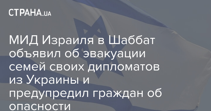 Израиль сообщил об эвакуации семей дипломатов из Украины и не рекомендует гражданам посещать Украину.