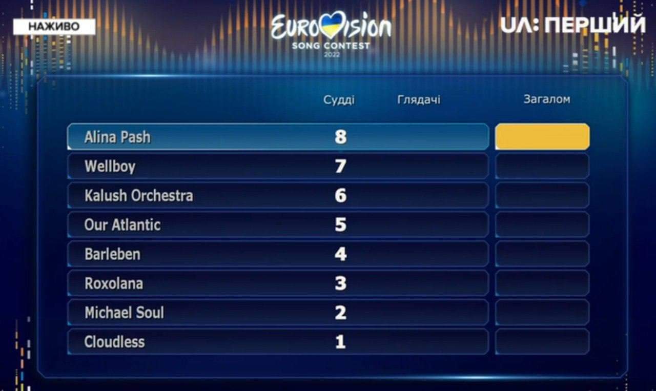 6 баллов получил Wellboy. 7 баллов - Alina Pash, а максимум (8 баллов) - группа Kalush Orchestra.