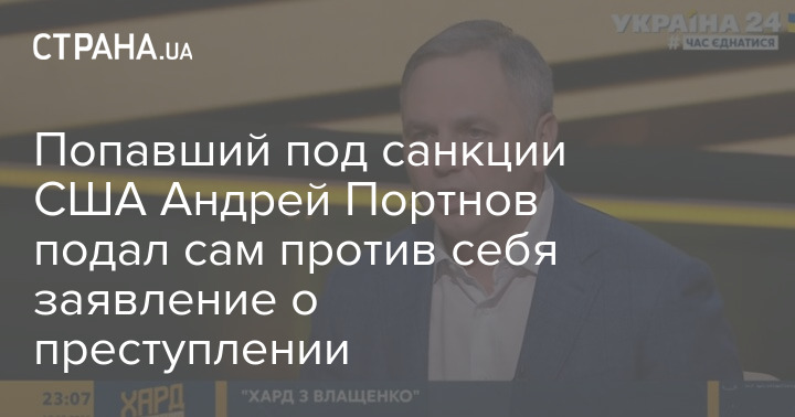Известный украинский юрист Андрей Портнов, против которого в декабре 2021-го США ввели санкции, подал против себя заявление о совершении преступления, чтобы доказать, что никаких преступлений он не совершал.