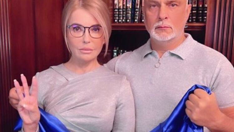 Тимошенко с мужем позировали с флагом Украины и тризубом из пальцев. Фото