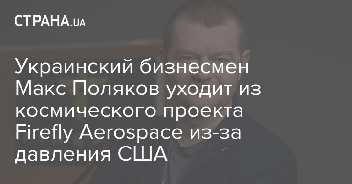 Украинский предприниматель Макс Поляков объявил о вынужденном выходе из космического проекта Firefly Aerospace.