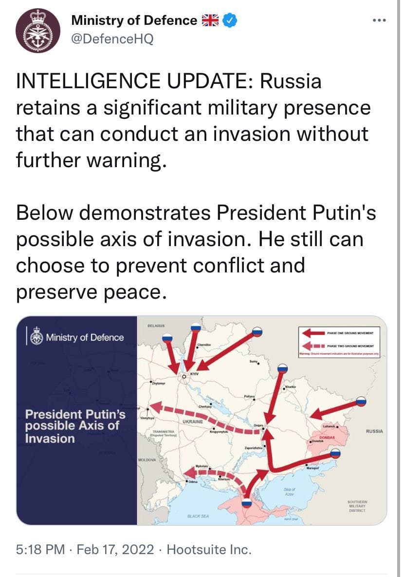 Сначала британское минобороны опубликовала "карту наступления" России на Украину, подняв этот вид изобразительного искусства до ранга официального (раньше им "баловались" только в прессе, причем преимущественно "желтой").
