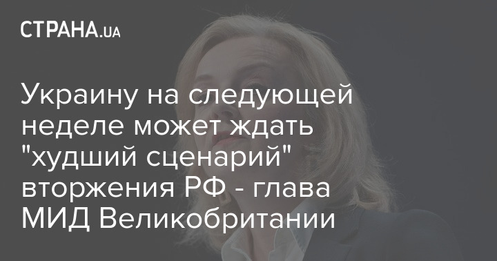 Глава Министерства иностранных дел Великобритании Элизабет Трасс, ранее заявлявшая, что Россия может на месяцы затянуть кризис вокруг Украины, рассказала, что Украина уже на следующей неделе может столкнуться с "худшим сценарием вторжения России".