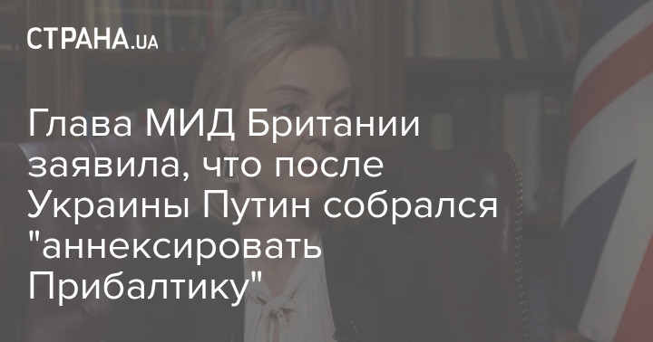 Министр иностранных дел Великобритании Лиз Трасс заявила, что если сейчас не остановить президента России Владимира Путина, то в следующий раз он возьмется за Прибалтику, пытаясь восстановить границы бывшего Советского Союза.