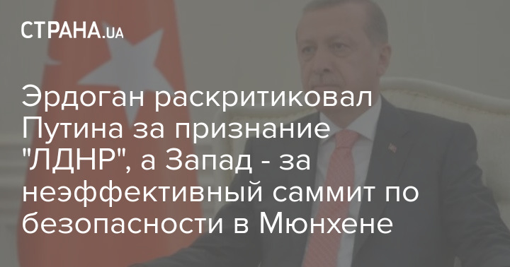 По словам Эрдогана, Турция "стремится к деэскалации напряженности в регионе". Также он раскритиковал Запад за неэффективность Мюнхенского саммита по безопасности.