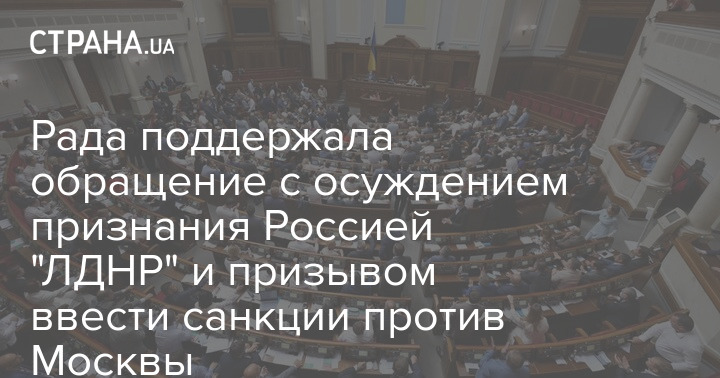 Во вторник, 22 февраля, Верховная Рада Украины поддержала обращение, в котором признание Россией "ЛНР" и "ДНР" оценивают как "очередной акт агрессии" и призывают ввести ряд санкций против Москвы.