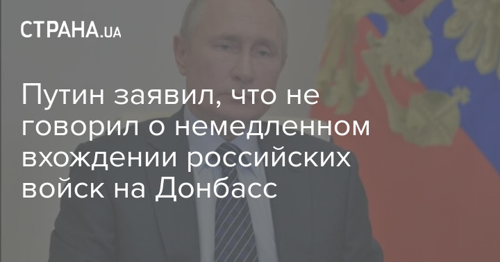 Президент России Владимир Путин заявил, что не говорил о том, что российские войска пойдут на Донбасс "прямо сейчас".