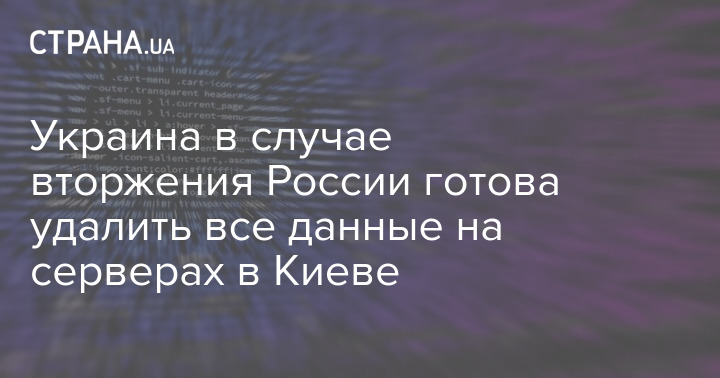 Власти Украины не исключают необходимости уничтожения данных на серверах и переноса конфиденциальной информации из Киева. Это будет сделано в случае вторжения РФ в столицу.