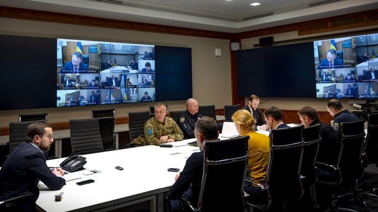 Заместитель руководителя Офиса президента Кирилл Тимошенко провел селекторное совещание с главами областных госадминистраций и мэрами по введению чрезвычайного положения на всей территории Украины.  На мероприятии было сказано об усилении охраны Мариуполя в Донецкой области.