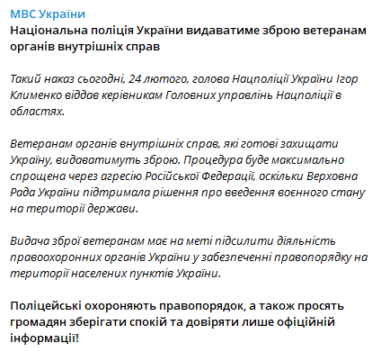 Цель выдачи оружия ветеранам - усилить деятельность правоохранительных органов Украины в обеспечении правопорядка на территории населенных пунктов.