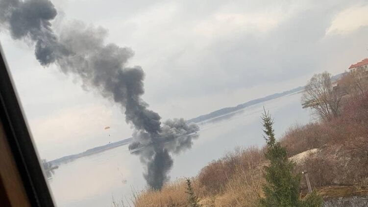 В Киевской области под Вышгородом был уничтожен российский вертолет. Судя по фото, он упал прямо в воду. Об этом сообщает УНИАН.