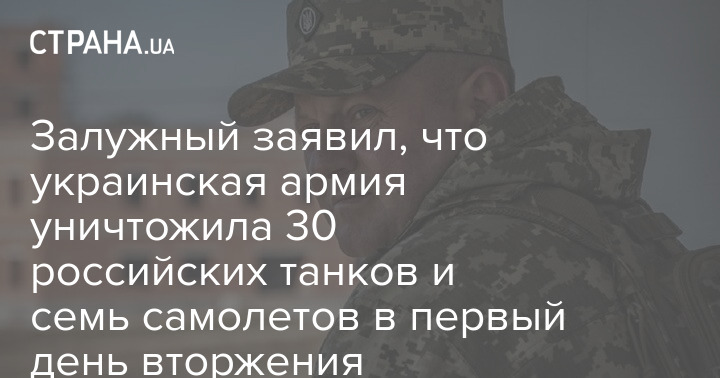 Залужный заявил, что украинская армия уничтожила 30 российских танков и семь самолетов в первый день вторжения