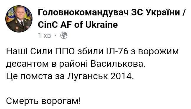 14:24 Украинское командование сообщает, что к северу от Киева противовоздушная оборона сбила два вертолета противника.
