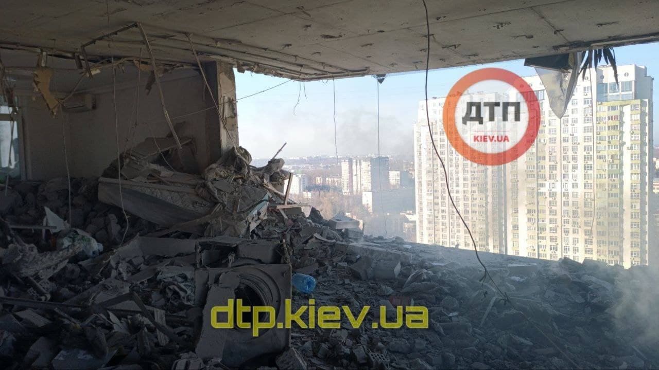 09:15 Киев. Так выглядит сейчас дом, на которые упали остатки сбитой ракеты "калибр".