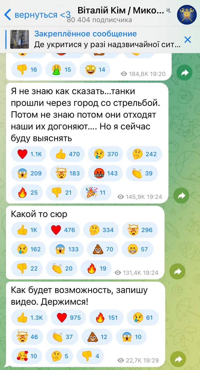 13:08 Обращение доктора Комаровского к россиянам и белорусам. "Знаете, с чего начинается утро в Украине? С того, что мы обзваниваем всех, кого не видели ночью, от кого весточки не было, это связь между бомбоубежищами, лесами, погребами. Спрашиваем, живы-нет? Когда долго не берут трубку, бьемся в истерике. Только что успокаивал невестку. Она разговаривала по телефону с родным дедом из Брянска. Он ей рассказывал, что надо еще немного потерпеть и нас "доосвободят". Вы знаете, в Харькове горят "Тигры". Знаете, кто такие "Тигры"? Эдакие машинки русской армии, освободители, @лядь, приехали. Они горят классно. Наши делают коктейли специальные, называются "бандеровское" смузи... У нас война!