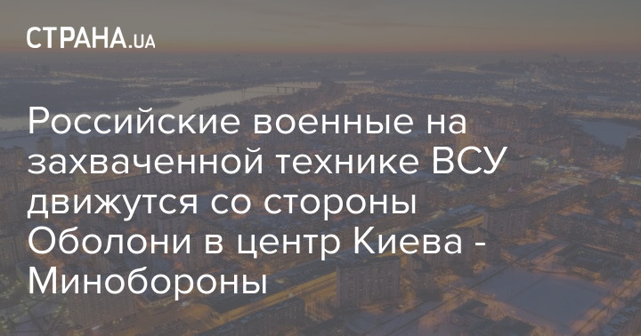Замминистра обороны Анна Маляр сообщает, что российские военные на захваченной технике ВСУ движутся со стороны Оболони в центр Киева.
