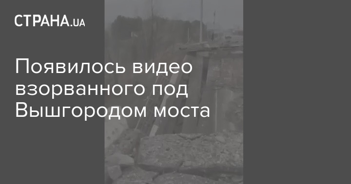 В сети опубликовано видео взорванного моста под Вышгородом. Мост уничтожен для того, чтобы затруднить российской технике подходы к Киеву.