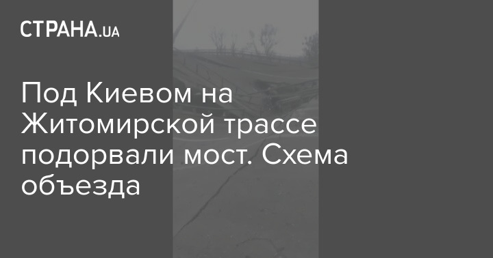 В субботу, 26 февраля, в селе Стоянка под Киевом подорвали мост на Житомирской трассе. Кадры появились в Telegram.