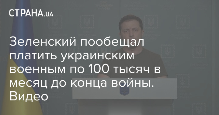 Владимир Зеленский записал новое видеообращение, в котором заявил, что украинским военным будут платить по 100 тысяч гривен в месяц до конца войны.