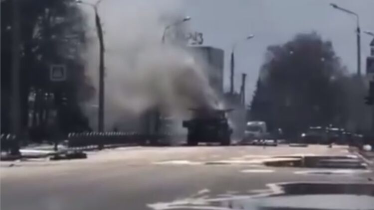 В Сети появилось видео подбитой и дымящейся боевой техники на улицах Харькова.