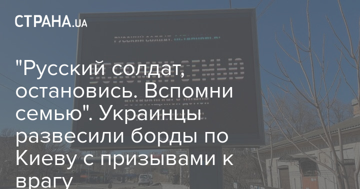 "Русский солдат, остановись. Вспомни семью". Украинцы развесили борды по Киеву с призывами к врагу