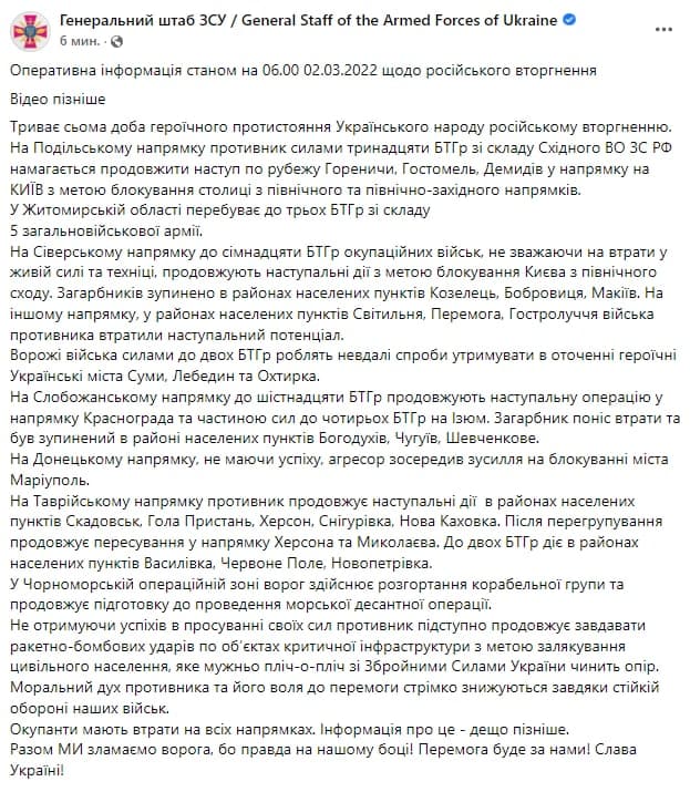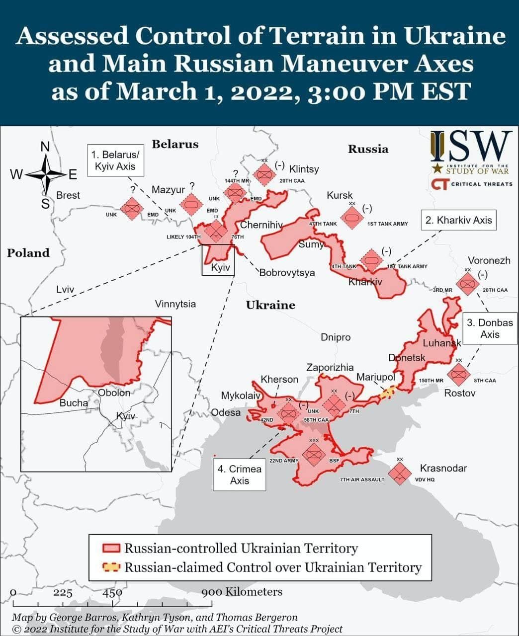 Продолжается наступление на Киев, Харьков, юг Украины. Продолжается окружение в Сумской области. Предпринимаются попытки блокировать Мариуполь.