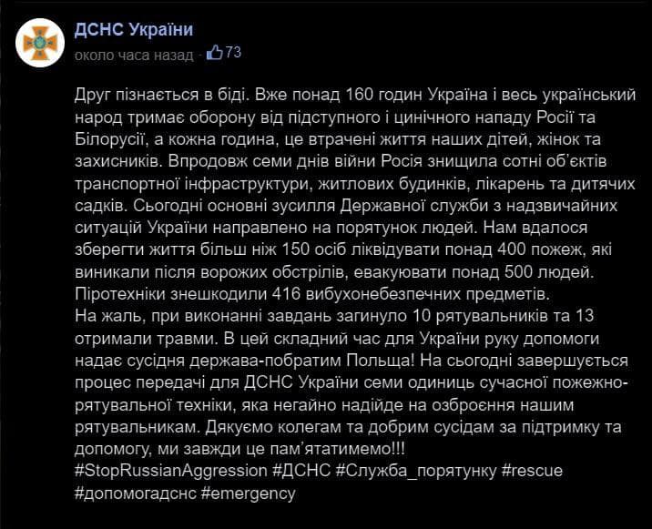 Этой ночью они продолжали бить по нашим городам, по мирным людям, жилым кварталам. Это не может объясняться ни одной человеческой причиной, ни одной божьей причиной, что же дальше, если уже Бабий Яр? Какие еще военные объекты угрожают России? Какие еще базы НАТО? Софиевский собор? Лавра? Андреевская церковь? О чем бы они не мечтали - черт с ними, с нами Бог".