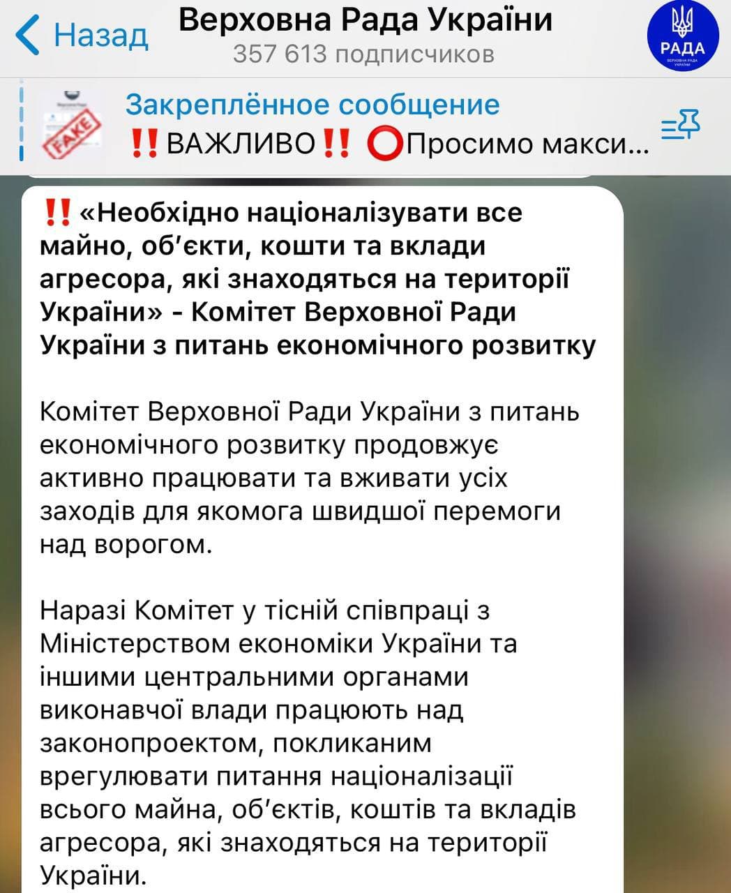 19:17 В Раде готовят законопроект о национализации всего имущества России в Украине.