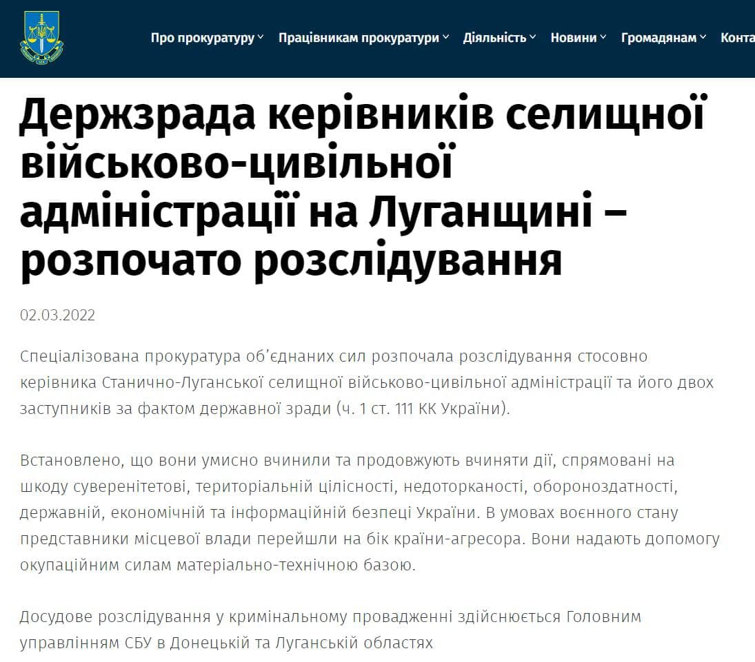 18:35 Глава Станицы Луганской обвиняется в том, что сдал город "ЛНР".