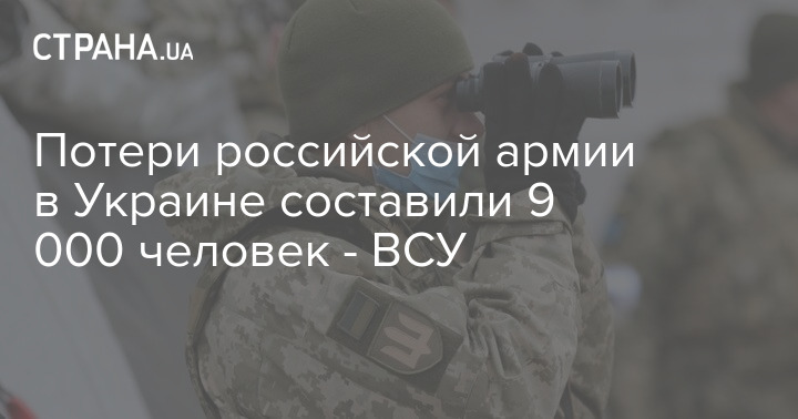 Потери российской армии в Украине составили 9 000 человек - ВСУ