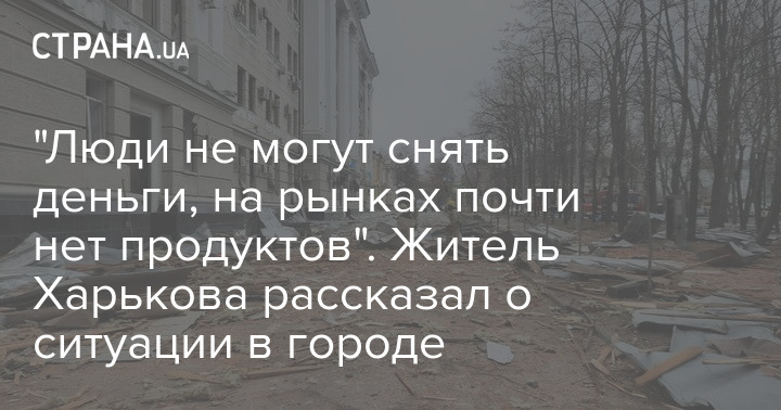 В Харькове во время боевых действий, которые продолжаются уже больше недели, жители города не могут снять деньги в банкоматах. Продовольственные магазины закрываются уже к 12:00. Люди приходят в 06:00 и занимают очереди. Только так есть возможность что-то купить.