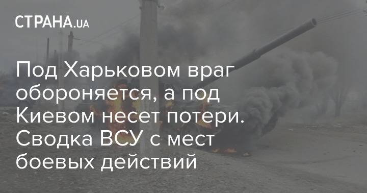 В Харьковском направлении не менее шести российских батальонных тактических групп (БТГр) вынуждены были перейти к обороне. Не исключено, что до трех вражеских БТГр предпримут очередную попытку окружить Харьков с юга. Об этом сообщается в сводке Генштаба ВСУ по состоянию на 12:00 четверга, 3 марта.