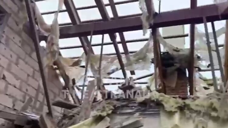 Жители поселка сняли для "Страны" видео дома, после того, как в него угодил снаряд. На кадрах видно, что дом почти полностью разрушен - нет крыш, большинство стен не уцелели.