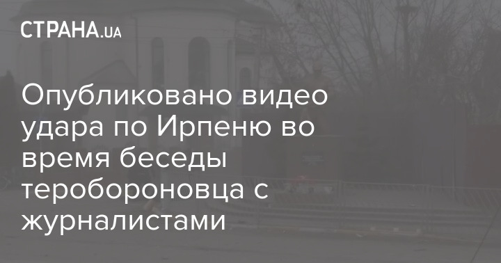Удар по Ирпеню попал на камеры журналистов. В сети появилось видео, на котором запечатлен прогремевший взрыв. Он раздается как раз в тот момент, как по всей видимости представитель теробороны рассказывает, что вчера вывозили из города мирное население и погибших.