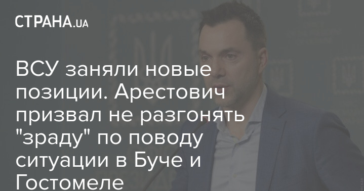 ВСУ заняли новые позиции. Арестович призвал не разгонять "зраду" по поводу ситуации в Буче и Гостомеле